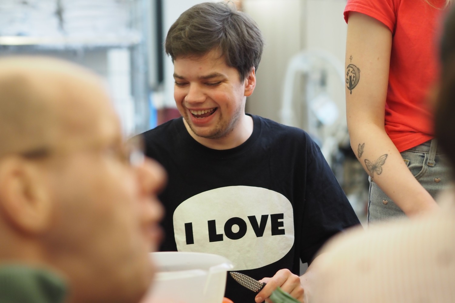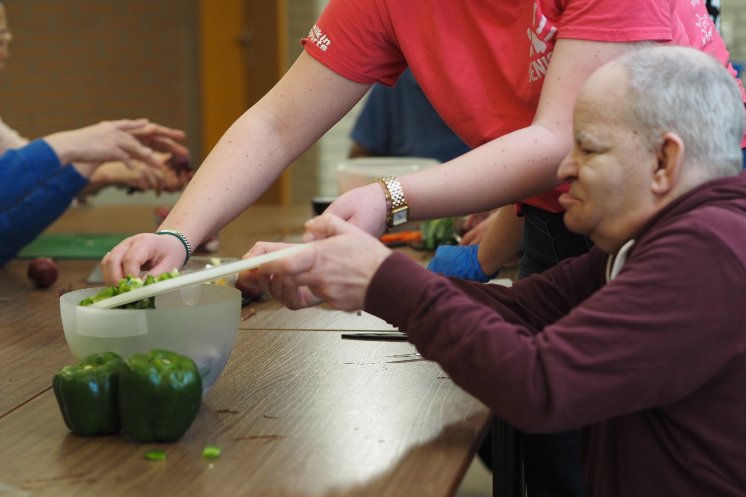 Tijdens het snijden van de groente is er tijd voor een gezellig gesprek en wordt er veel gelachen. Na het harde werk is het natuurlijk ook nog tijd om te proeven! Vandaag stond er een mexicaanse soep op het menu.